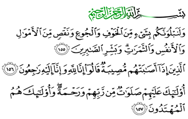 ürünlerden eksiklik ile imtihan edecegiz. Müjdele o sabirlilara (156) ki baslarina bir bela geldiginde: "Biz Allah a aitiz